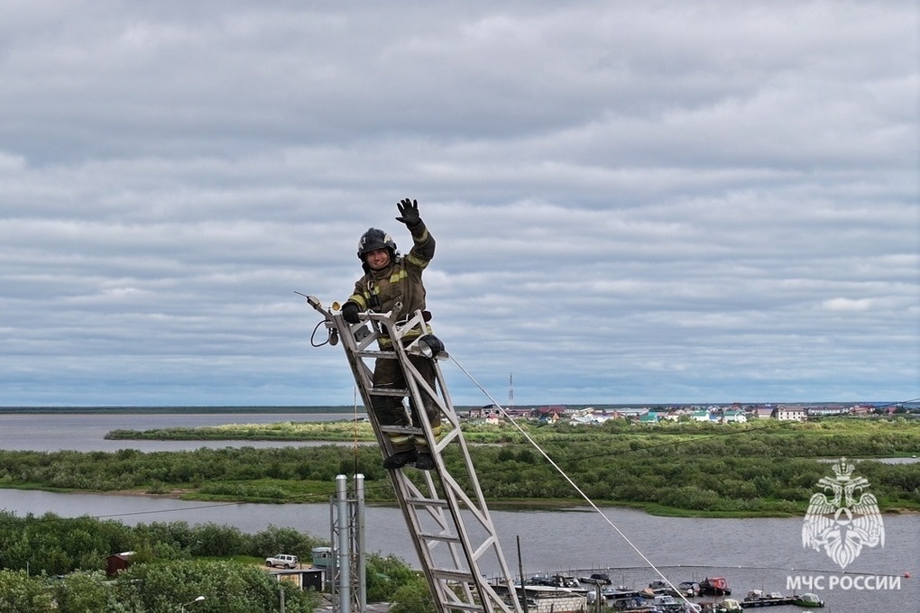 Сотрудники оттачивали мастерство работы с автолестницей.