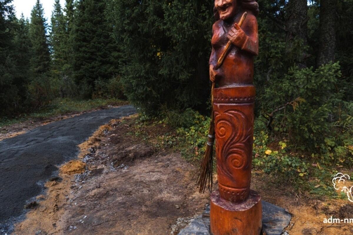 Благоустройство прогулочной тропы в Сахалинском лесу продолжается. На территории установили деревянные скульптуры с персонажами из народных сказок.